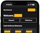 Tap 'My Account' on desktop or the profile icon on the app to access your current funds.