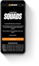 Navigate to Squads. On mobile you can find the Squads tile just under the top menu, or you can click the big banner ad that rotates in the carousel.