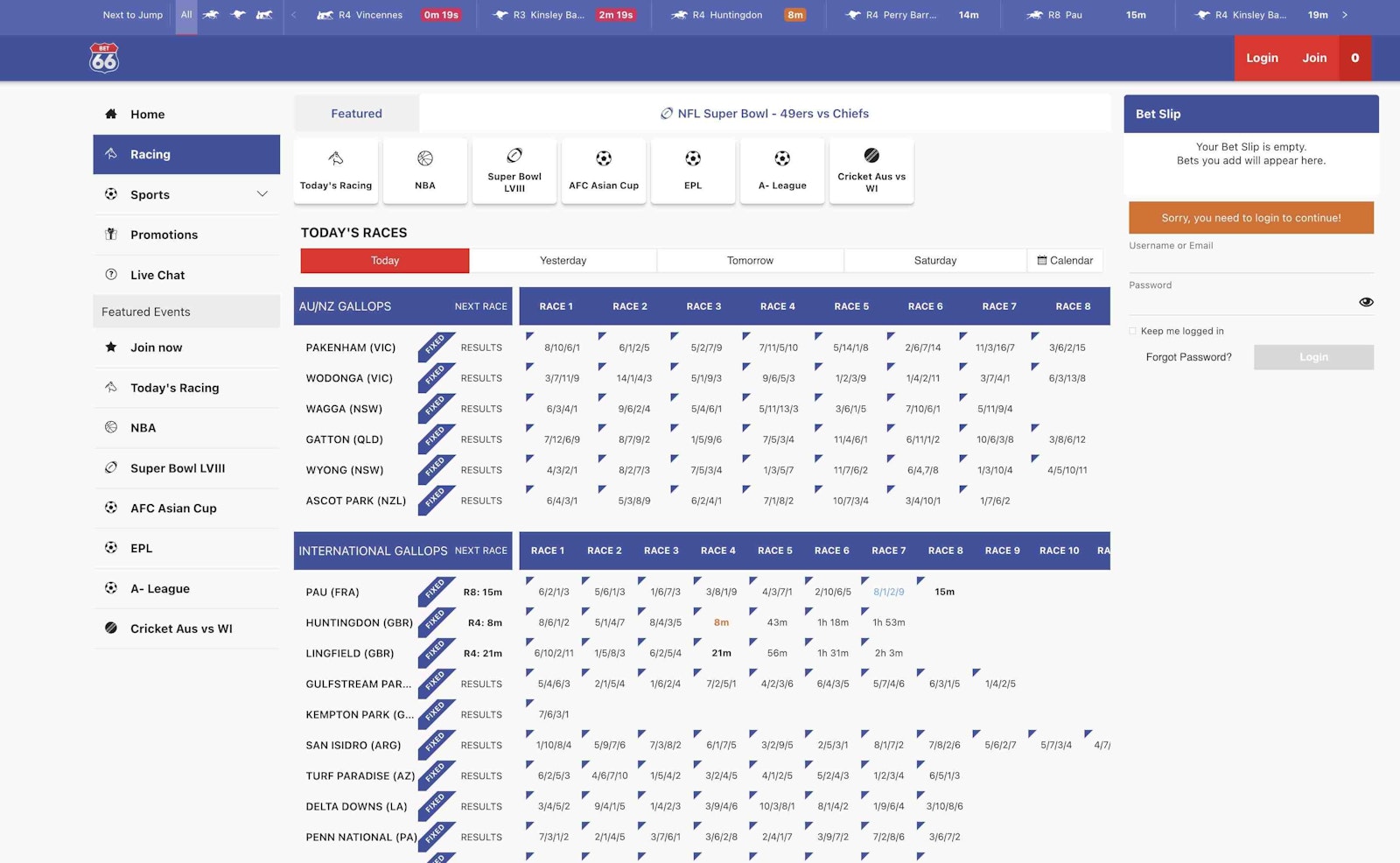 Although Bet66 gives you the option to combine same game multis to really balloon your odds, the site is much better for racing and offers few sports promos, not really any obscure sports and no futures.