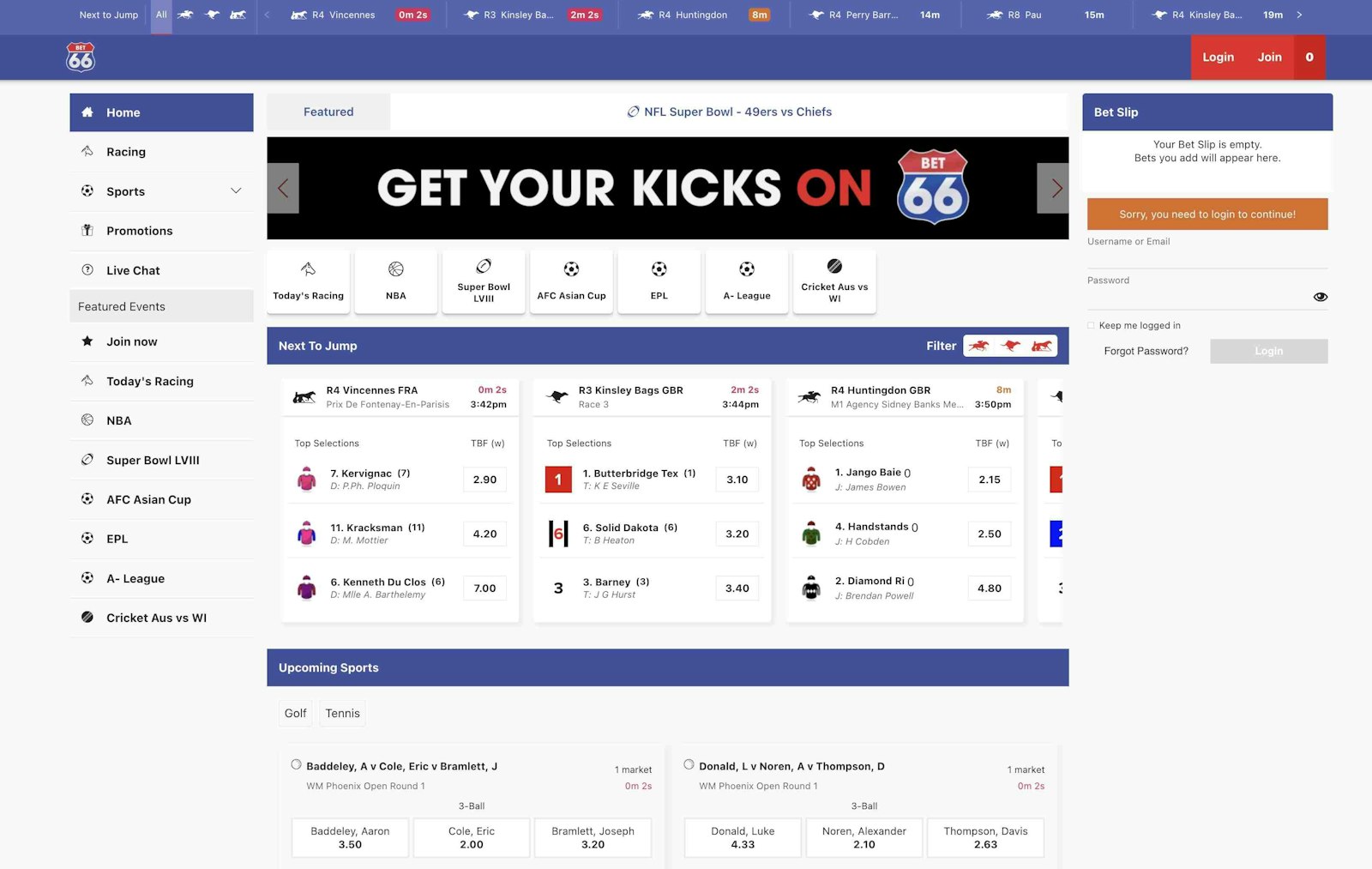 Bet66 launched in Spring 2023 on the BetMakers platform. While the betting site seems to be named after an old and unused American road - the site itself is very slick and fit for use, with fresh features such as live streaming, same game multis and plenty of racing insights.