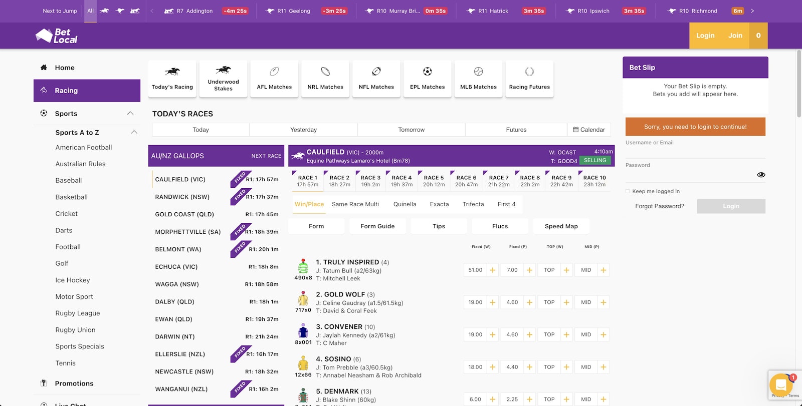 BetLocal offers specials for sports and racing. So, if you enjoy your AFL or NRL, then these are for you.