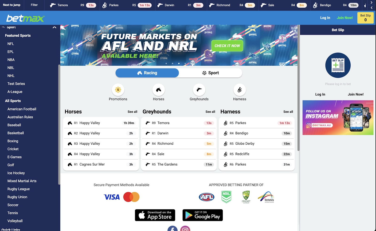 Another big positive of Betmax is that they have an AFL and NRL futures market where you can select teams to win the Premiership, miss the Top 8, and to make the Grand Final. This is a market that isn’t available with many bookmakers across Australia.