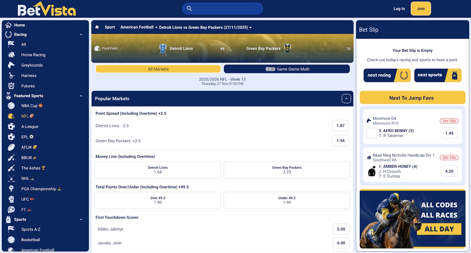Betvista Pty Ltd launched BetVista on November 26, 2025. They use the Punterstech betting software which means fast withdrawals, good promos and competitive odds.