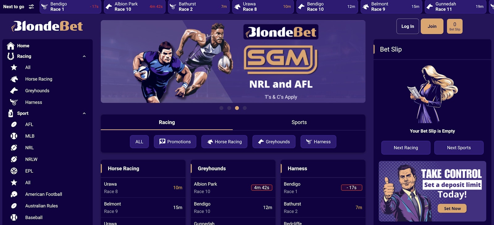 There is an excellent range of local and international racing markets available at BlondeBet. Expect all the meetings that TAB offers and over 15 sports at any given time.