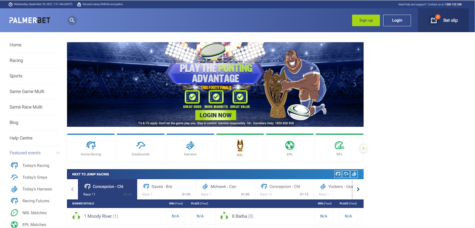 Know that you have to be at least 18 years old and an Australian resident to sign up and bet with Palmerbet.