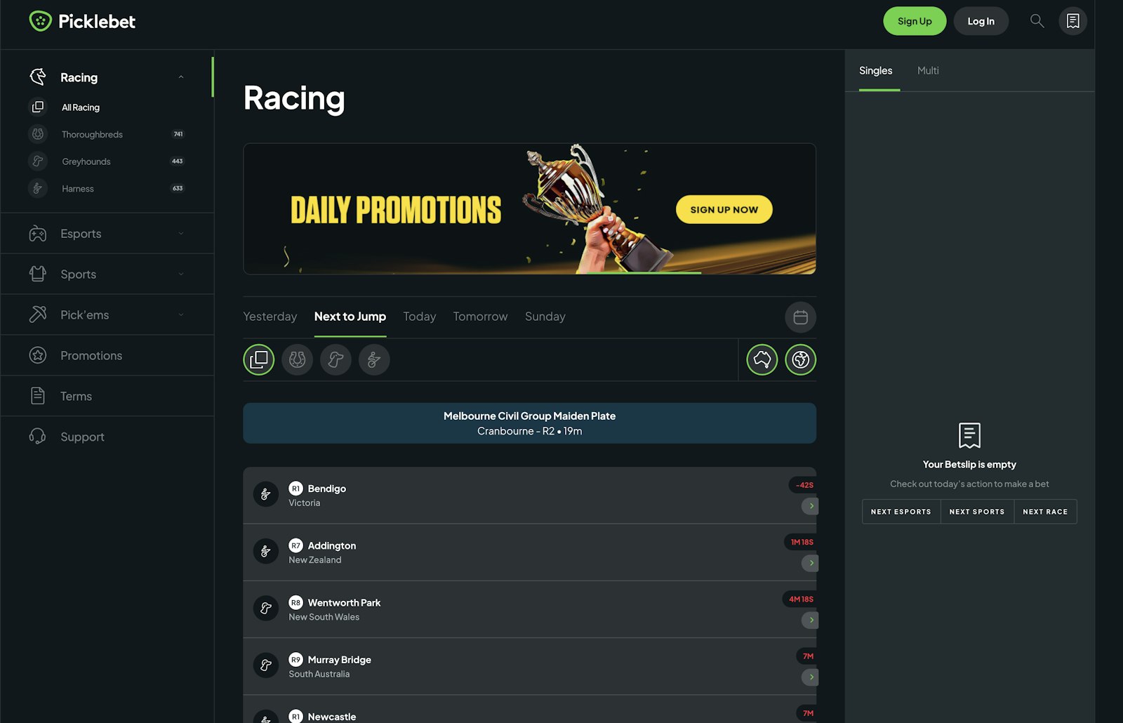 Unfortunately, due to Australia's strict betting regulations, we cannot advertise any Picklebet promotions or bonuses in this Picklebet review. That includes existing customer bonuses, sign up bonuses, and Picklebet bonus codes.