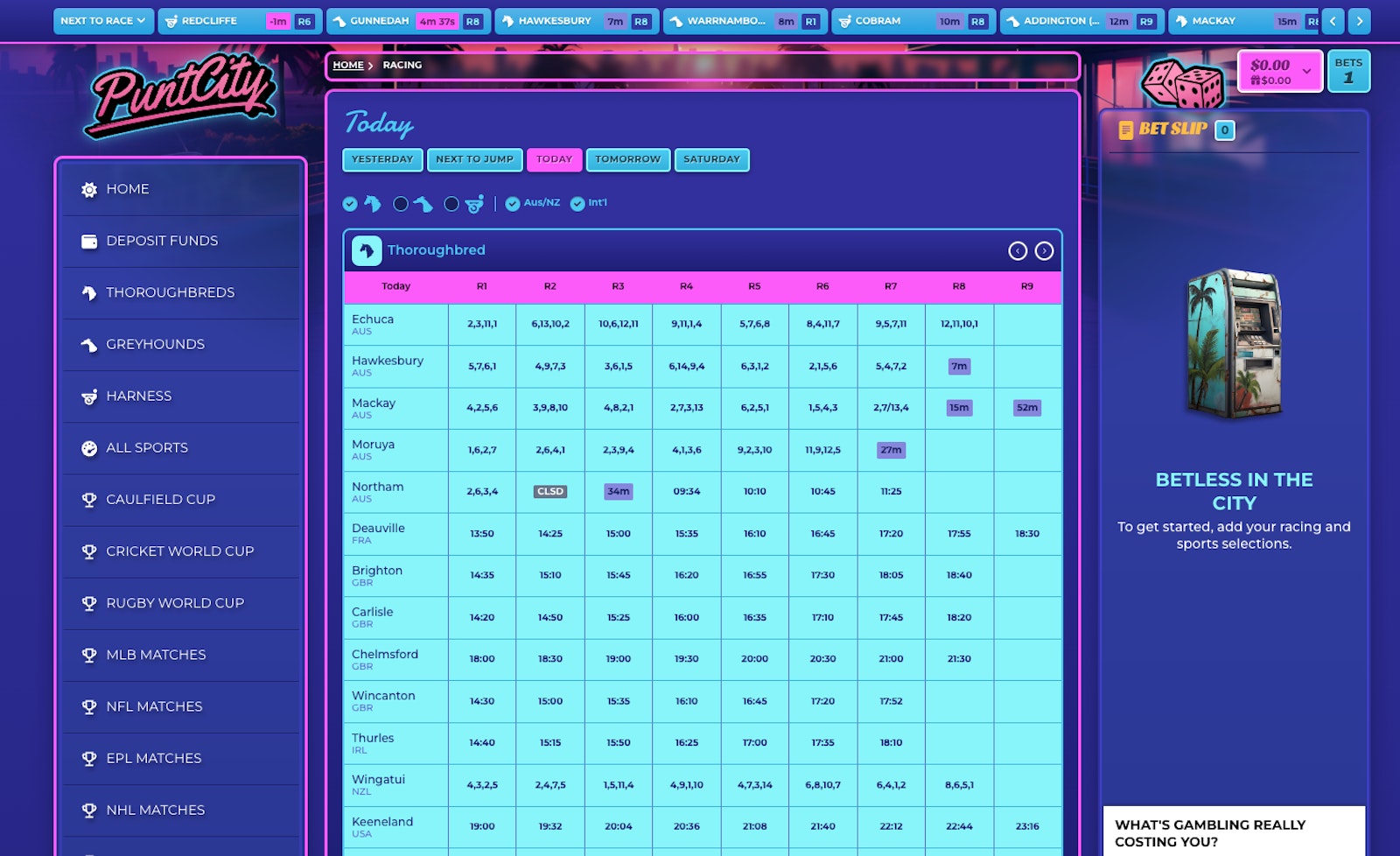 PuntCity launched in October 2023, and although it looks like Grand Theft Auto: Vice City on the PS2 - it's actually a solid bookie for sports, and has same game multis and a tonne of stat markets on certain sports including AFL, NRL, Rugby, NFL, NBA, EPL, MLB and more.