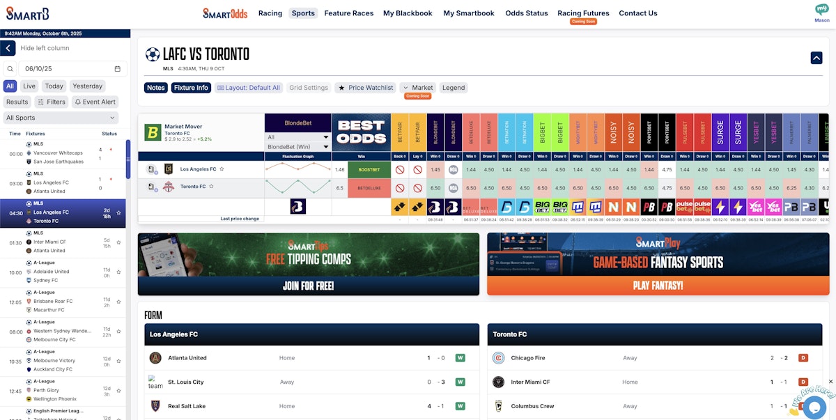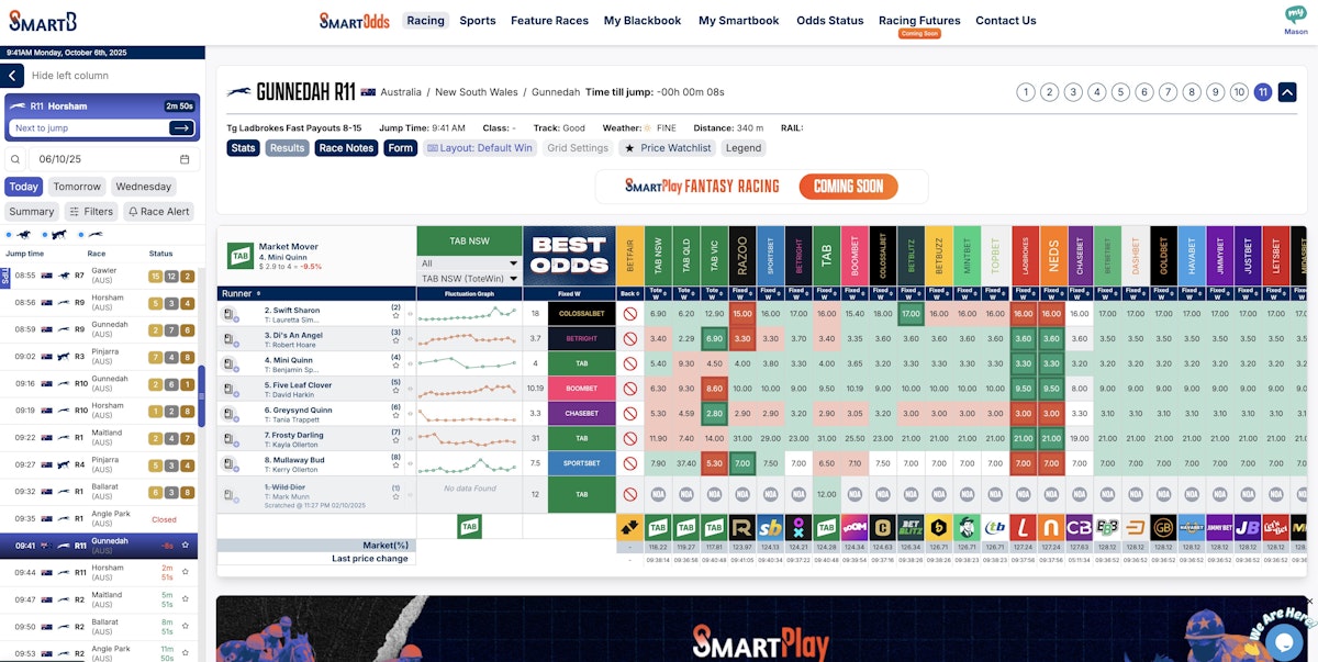 Originally just a horse racing odds comparison platform built to rival the likes of Dynamic Odds and Betwatch, SmartB is a full sports and racing ecosystem. This means that the SmartB platform has fantasy sports, news articles, tipping competitions, odds comparison, and AI-powered betting tools.