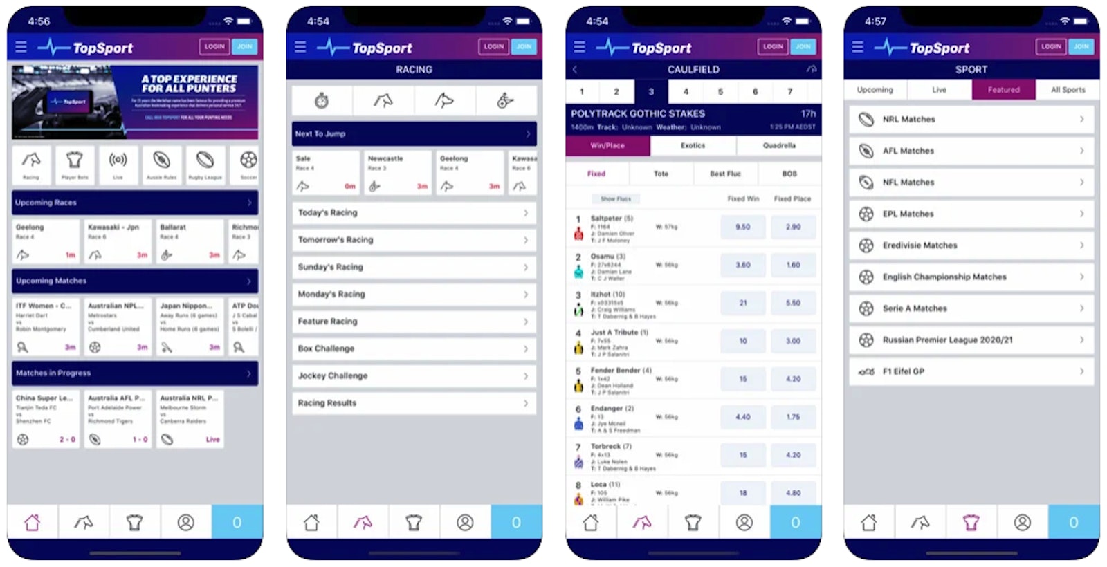 TopSport Australia gives punters access to the following racing products: