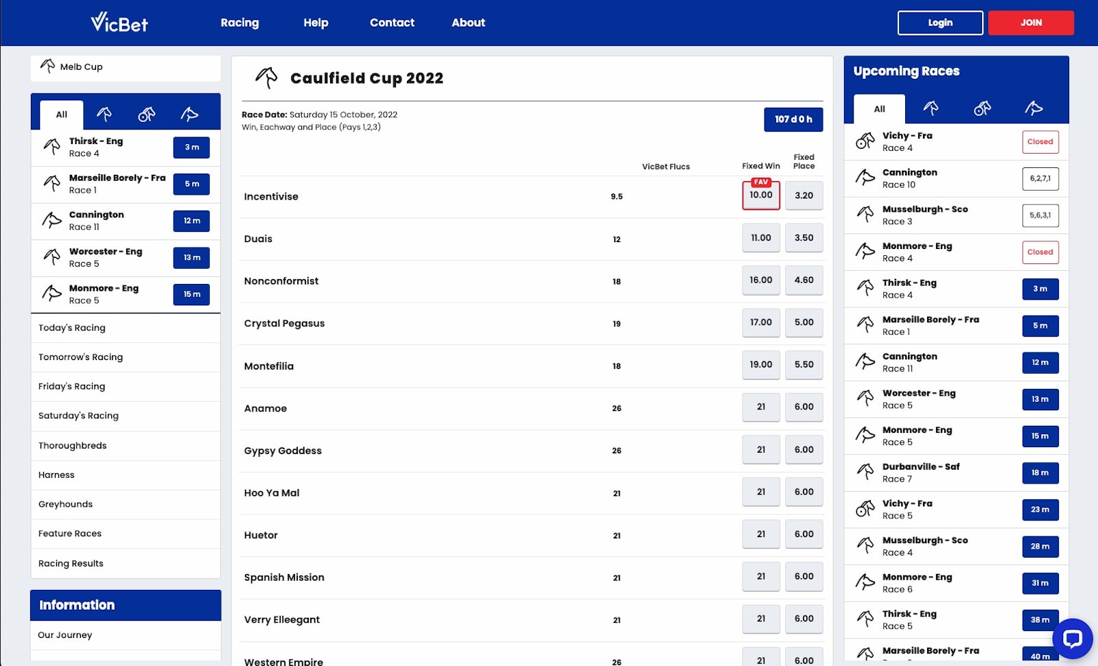 They once had Australia's most personal and dedicated customer service and all the racing bet types you can imagine, but now they don't offer BoB anymore and their support is quite frankly embarrassing. Personally, we've stopped using VicBet but they're still fine if you need a new account.