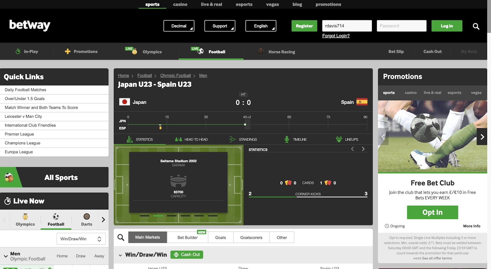 The Betway Free Bet Club is a fantastic way to ensure you get value bets if you are a regular player.