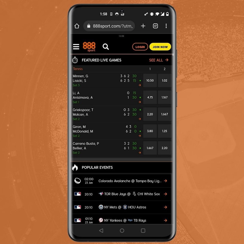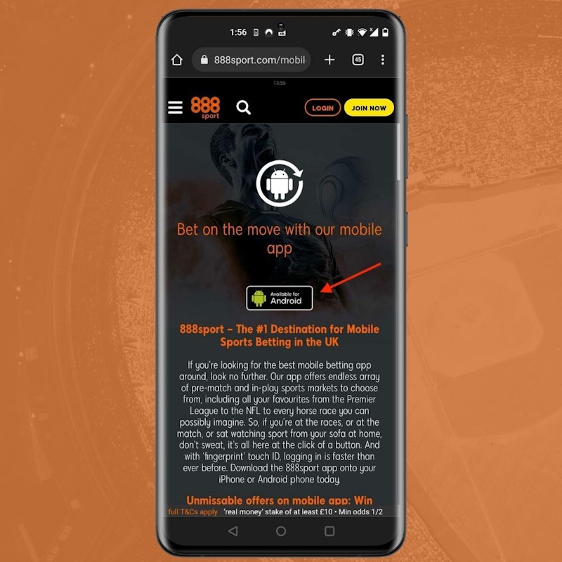 You can get to the 888sport app on the play store by going to 888sport and clicking “get the app” next to where the join now button is positioned.
