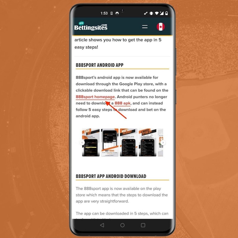 The first step in getting the 888sport app on your android device is to go ahead and visit 888sport’s website on mobile.