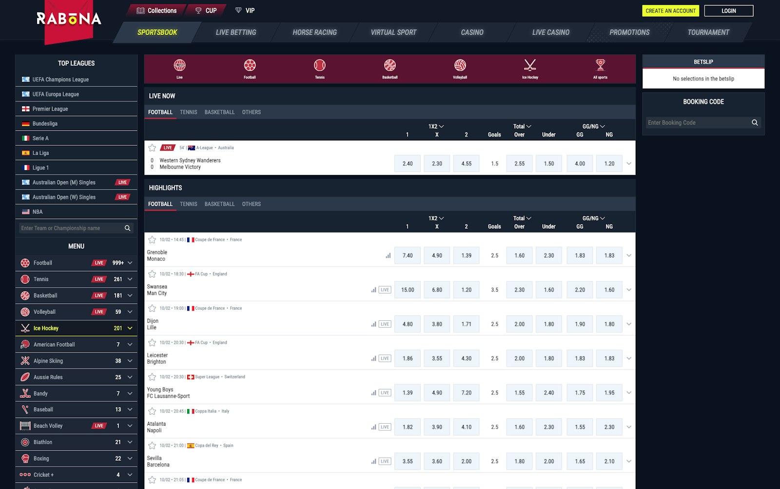 No betting site in Canada would be complete without a fully-stocked ice hockey betting section, and Rabona delivers with aplomb.