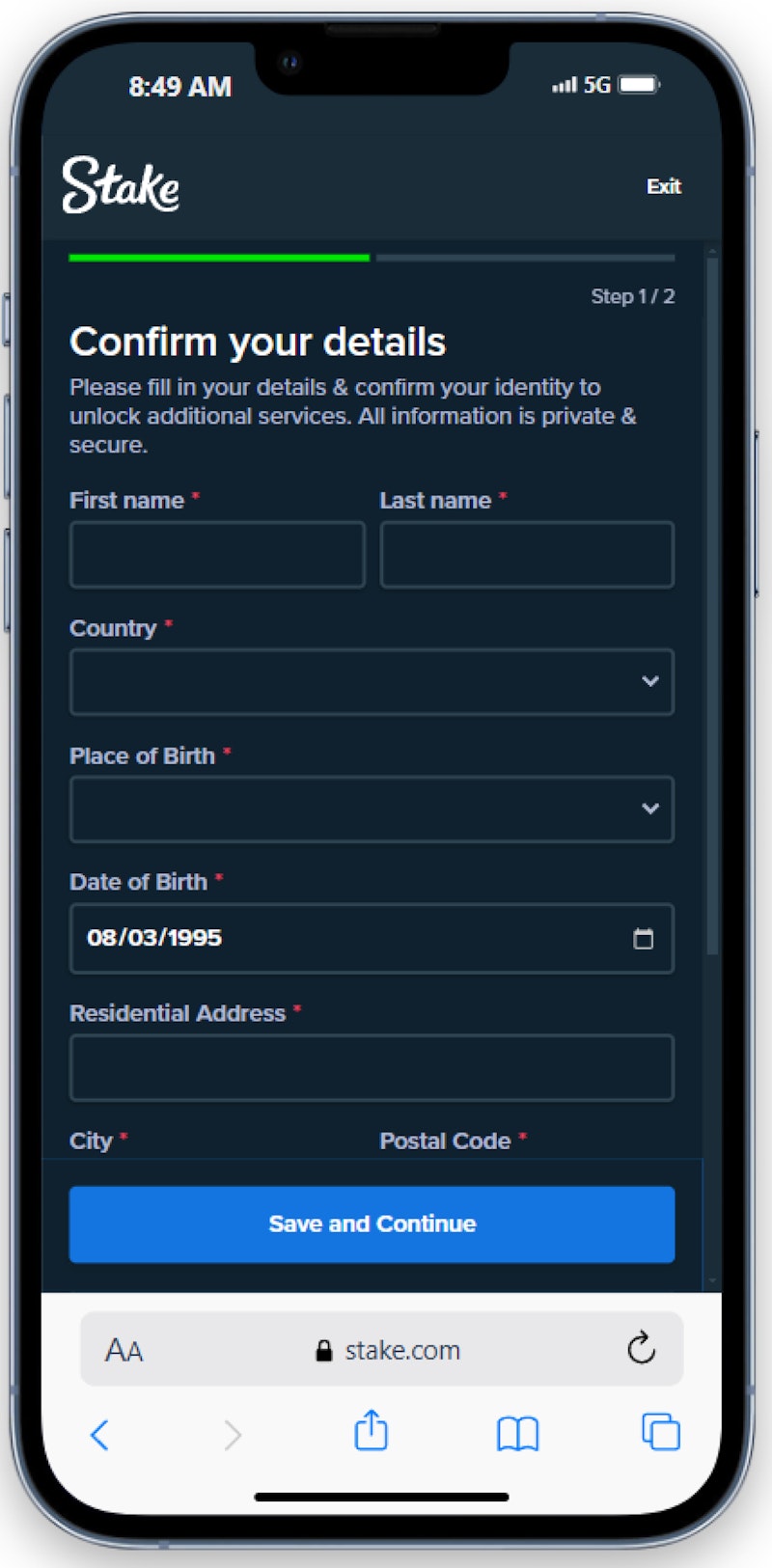We found that signing up for Stake Sportsbook was simple and straightforward. All it takes is 5 easy steps and you’re all set to start using the platform.