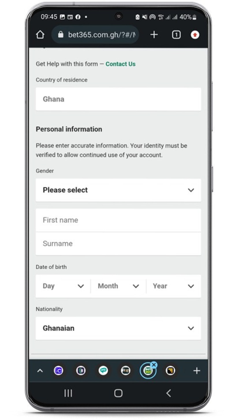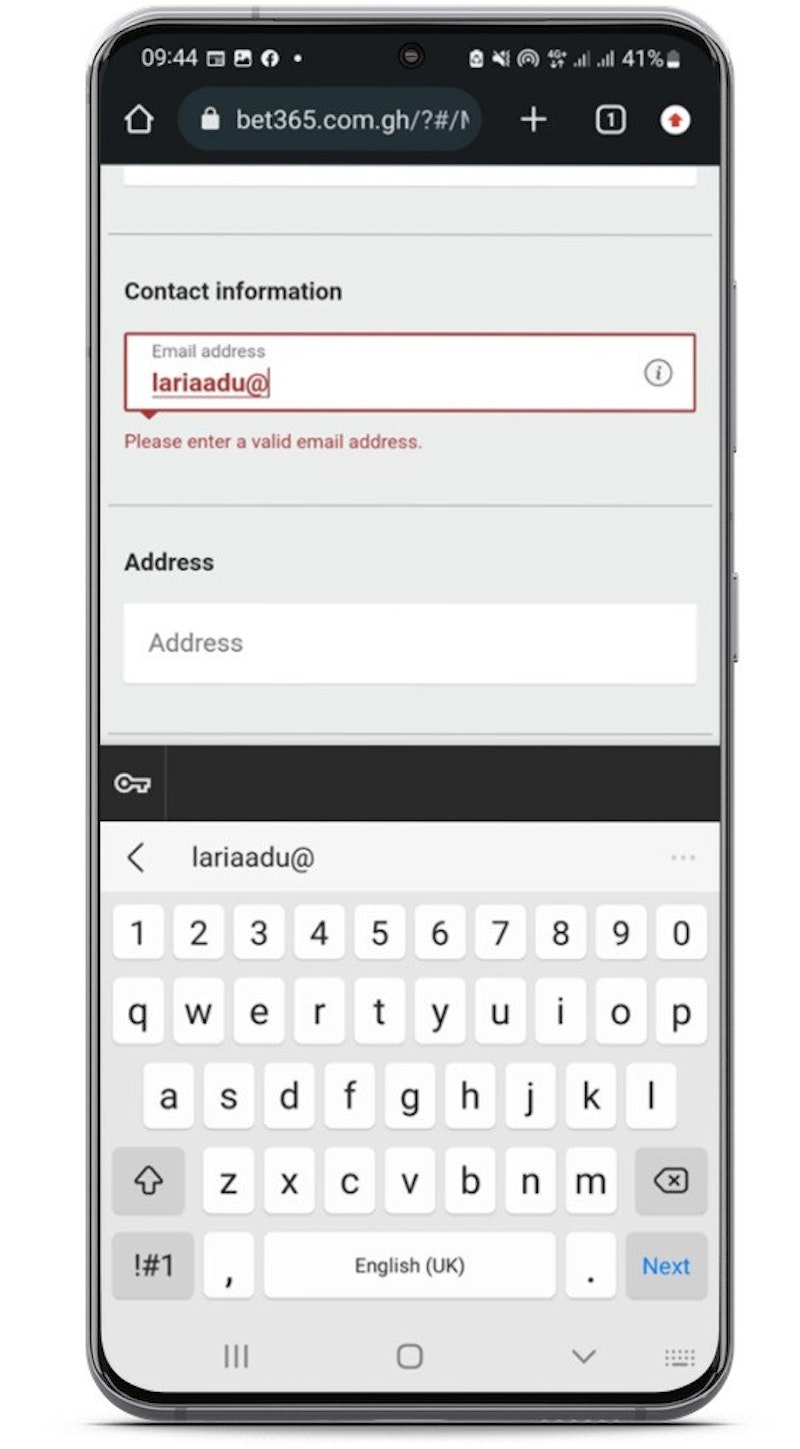 Bet365 requires Ghanaian users to enter a valid email address and physical address.