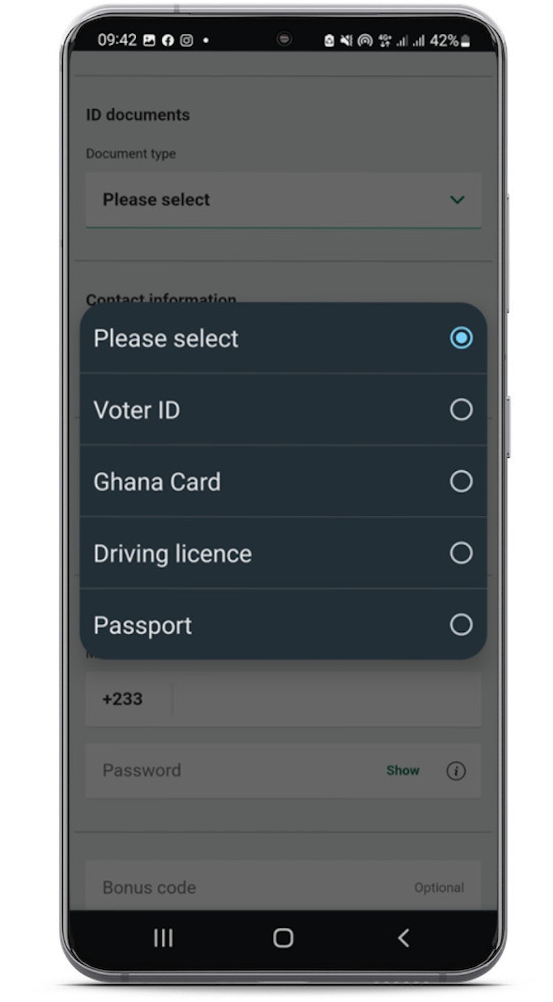 Firstly, you need to be at least 18 years old. For the actual registration, the most important requirements are a registered Ghanaian phone number, an active email address, and an identity document.