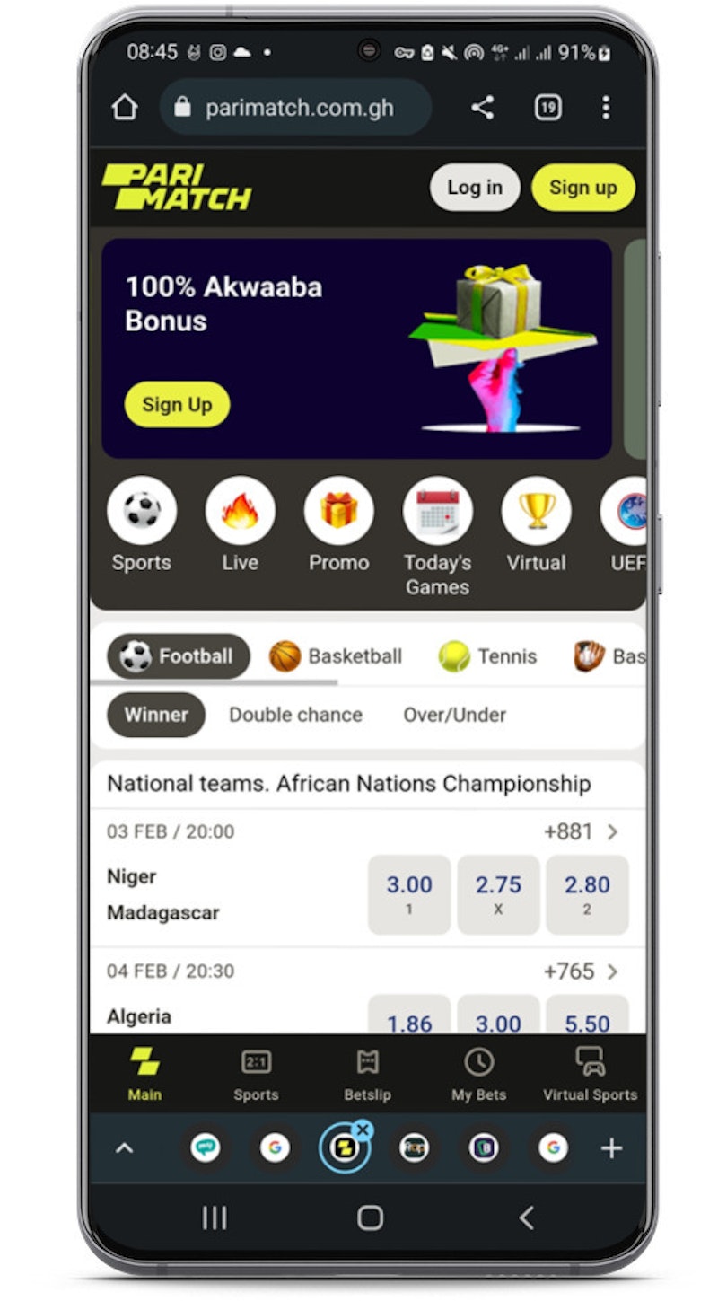 At the moment, Parimatch does not have a mobile app for Ghanaian players. However, you can still use Parimatch on your mobile device via the mobile site.