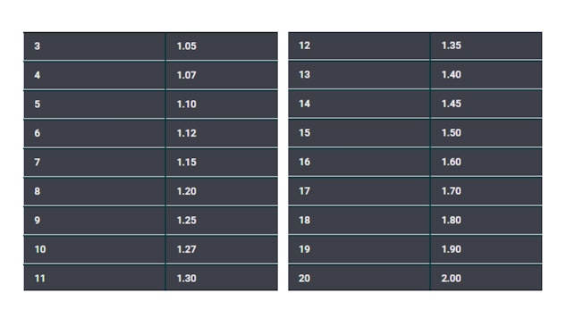 As you can see, the maximum boost factor is 2.00, and this can only be achieved when you have 20 games on your ticket.