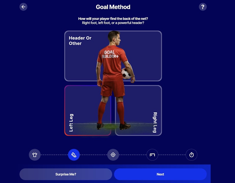 How will your player find the back of the net? Now you've selected your player, how will they score? Left foot, right foot or with their head? Depending on your player, this pick may be the easiest!