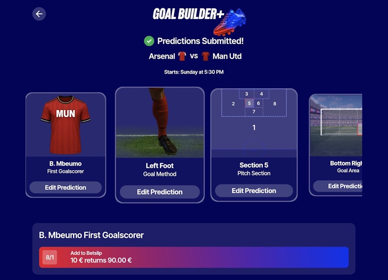 Goal Builder+, which launched at the start of 2026, allows punters to predict how and when the first goal is scored in the week’s selected Premier League match, with a share of the weekly jackpot or free bets up for grabs should you win.