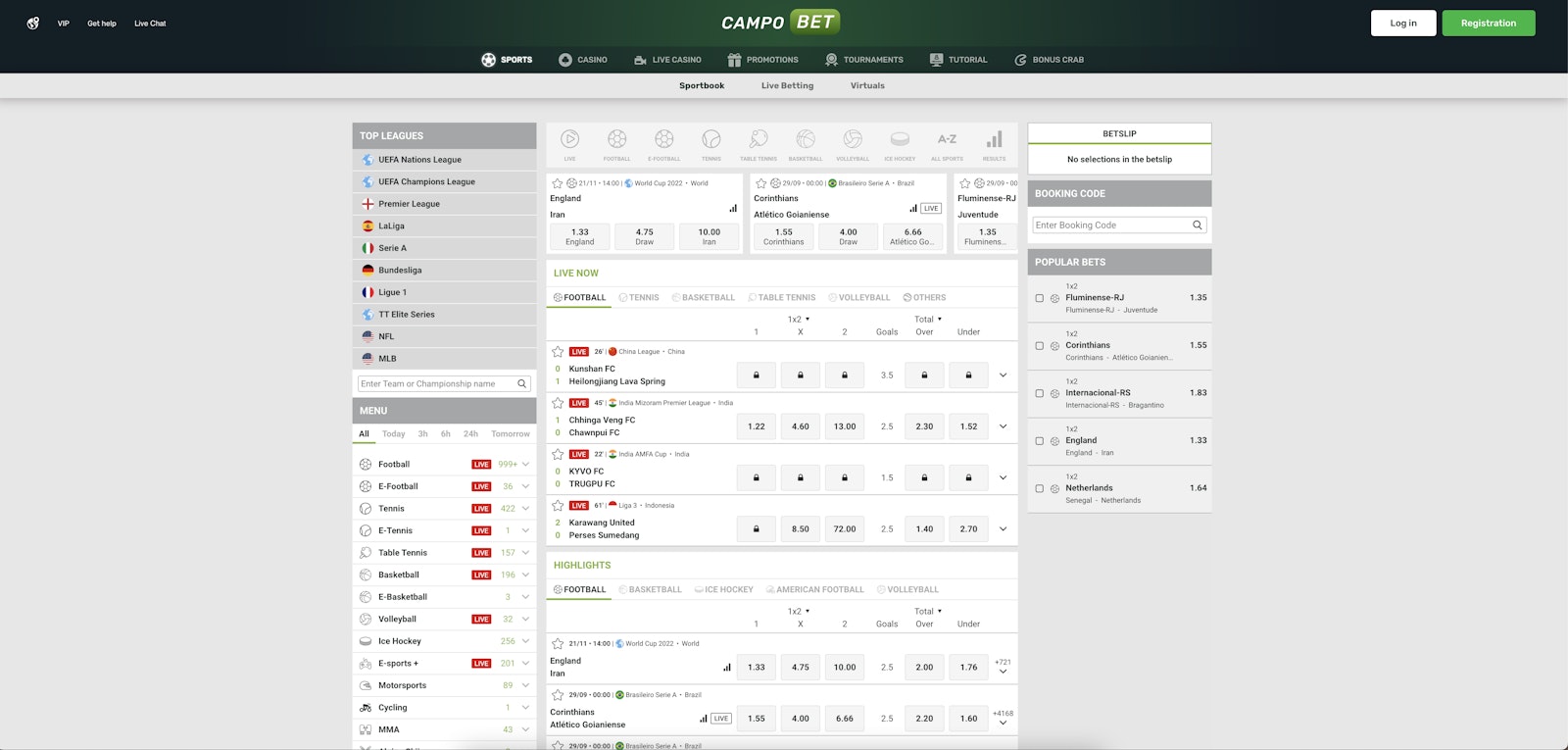 On top of a very good sportsbook, a top casino ensures the full online gambling experience at CampoBet. Users can pick from a large selection of table games and slots and try their luck in the Live Casino.