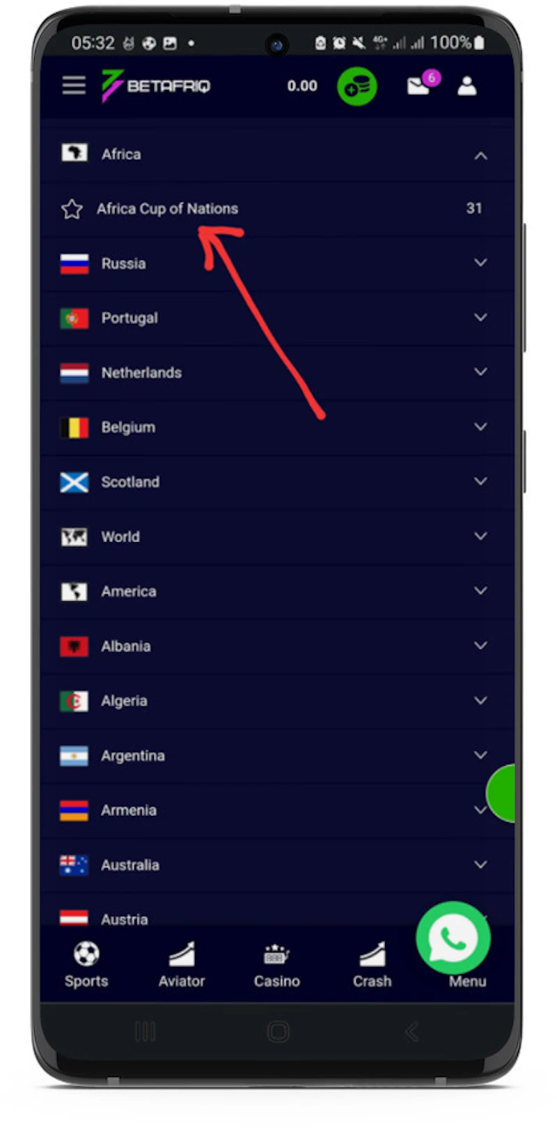 Here you will be able to find the AFCON betting section amongst the top options in the football section of the site.