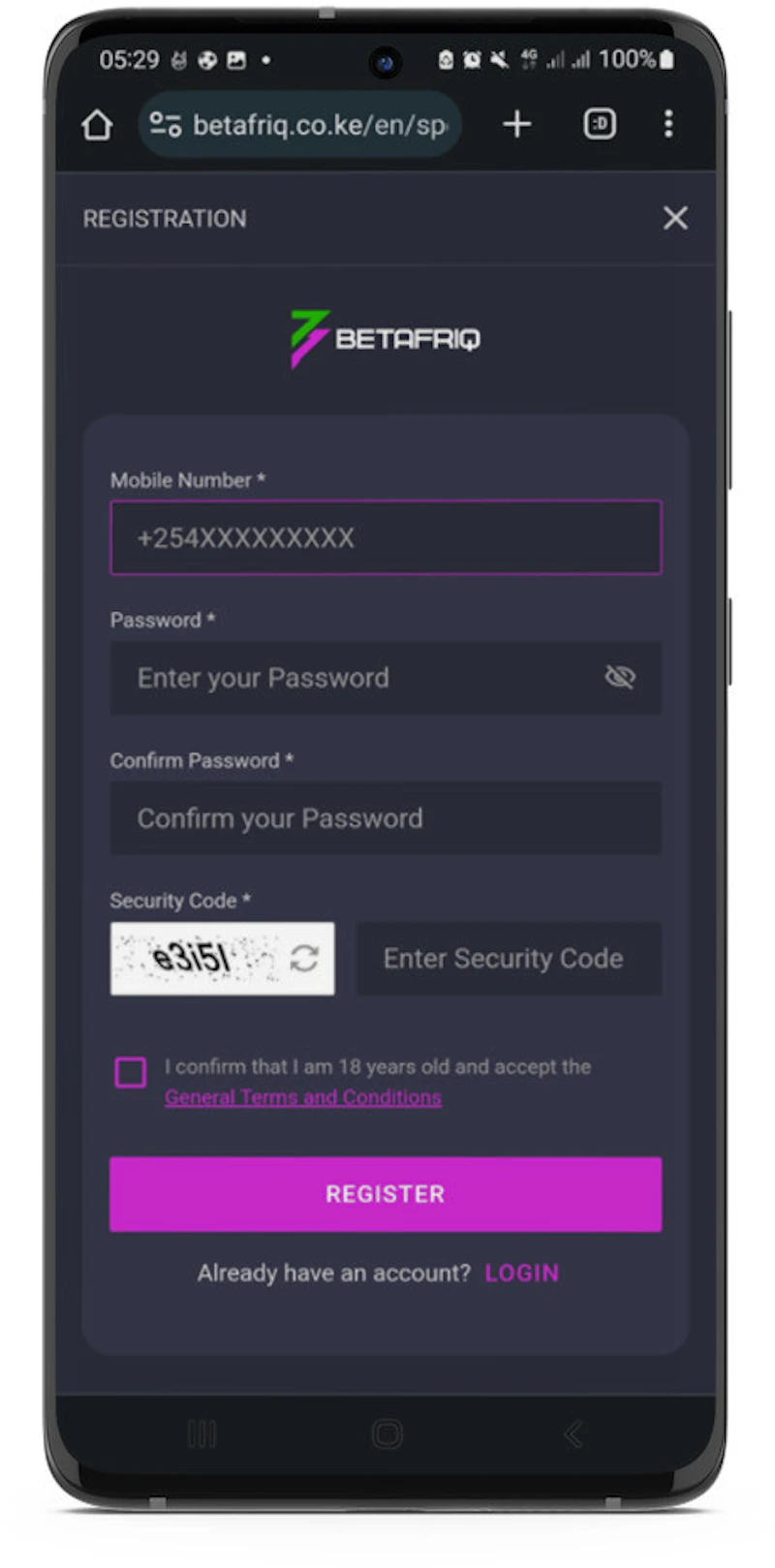 Fill in the registration form, submit the form and get your account. Click here if you wish to sign up on betafriq now