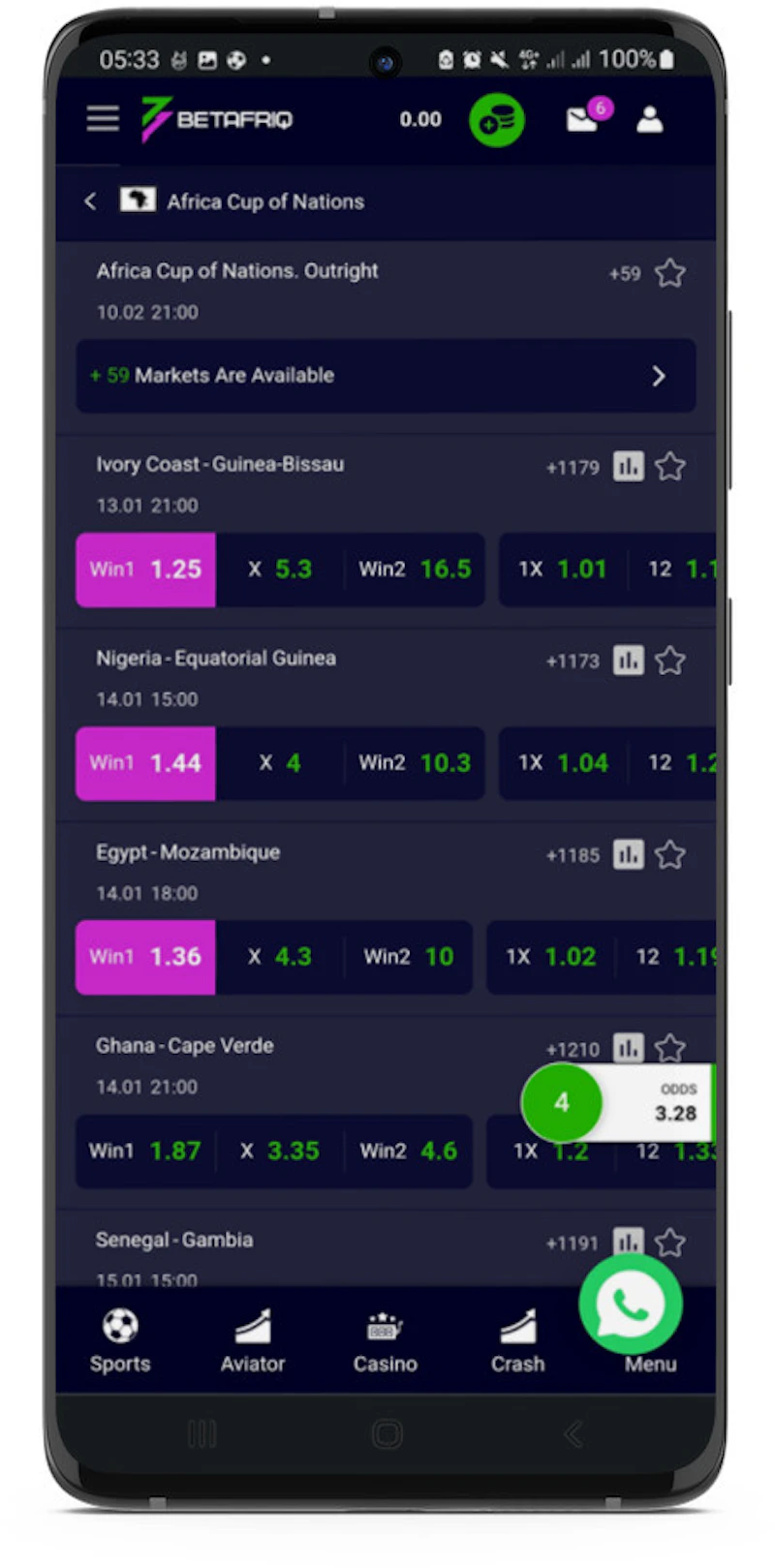 When you click on AFCON 2024, you will AFCON matches and great betting markets.