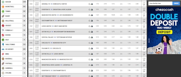 Betting is fun on Chezacash. The sportsbook has over 30 sports and thousands of daily events and betting options.