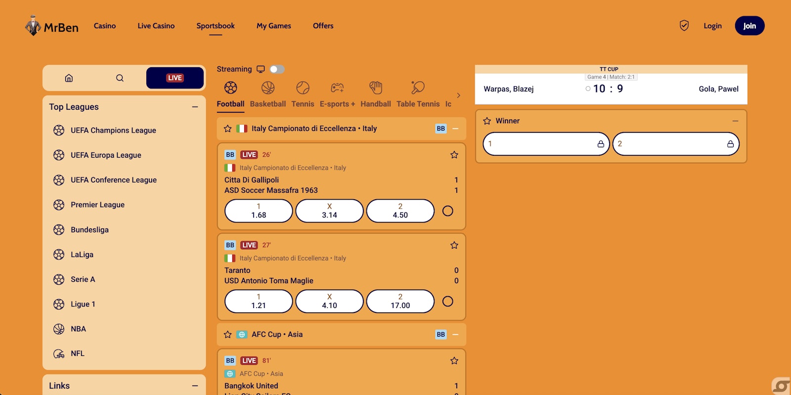 Mr Ben is a new betting site for 2025, owned and operated by White Hat Gaming.The sportsbook covers over 40 sports and events, with a particular focus on esports, football, and tennis. While horse racing and a dedicated mobile app are currently missing, both could be added as the platform continues to grow. With its clean layout and intuitive design, Mr Ben delivers a straightforward betting experience, making it a solid choice for players looking for a fresh new bookie in the UK.