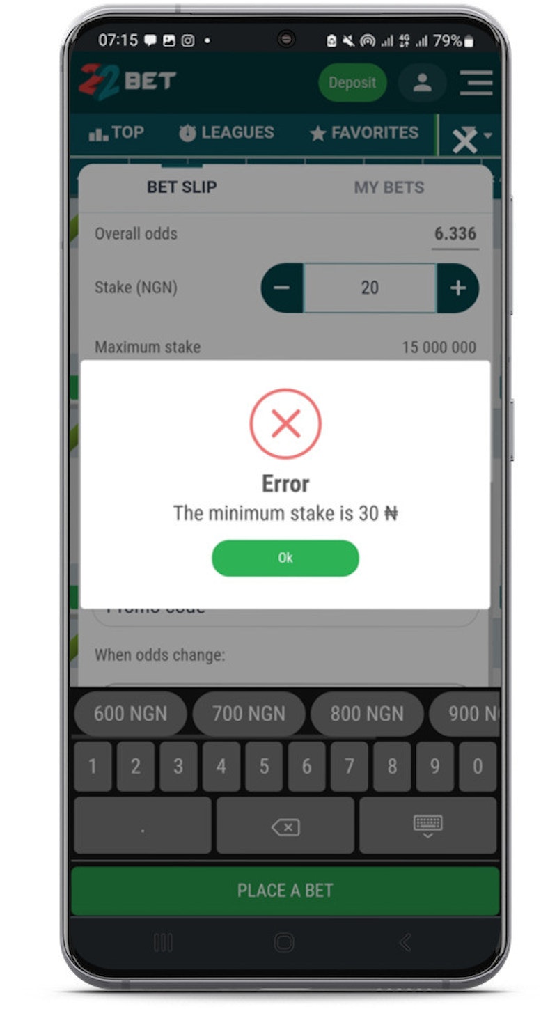 All deposit methods on 22Bet Nigeria have minimum deposits of N250.