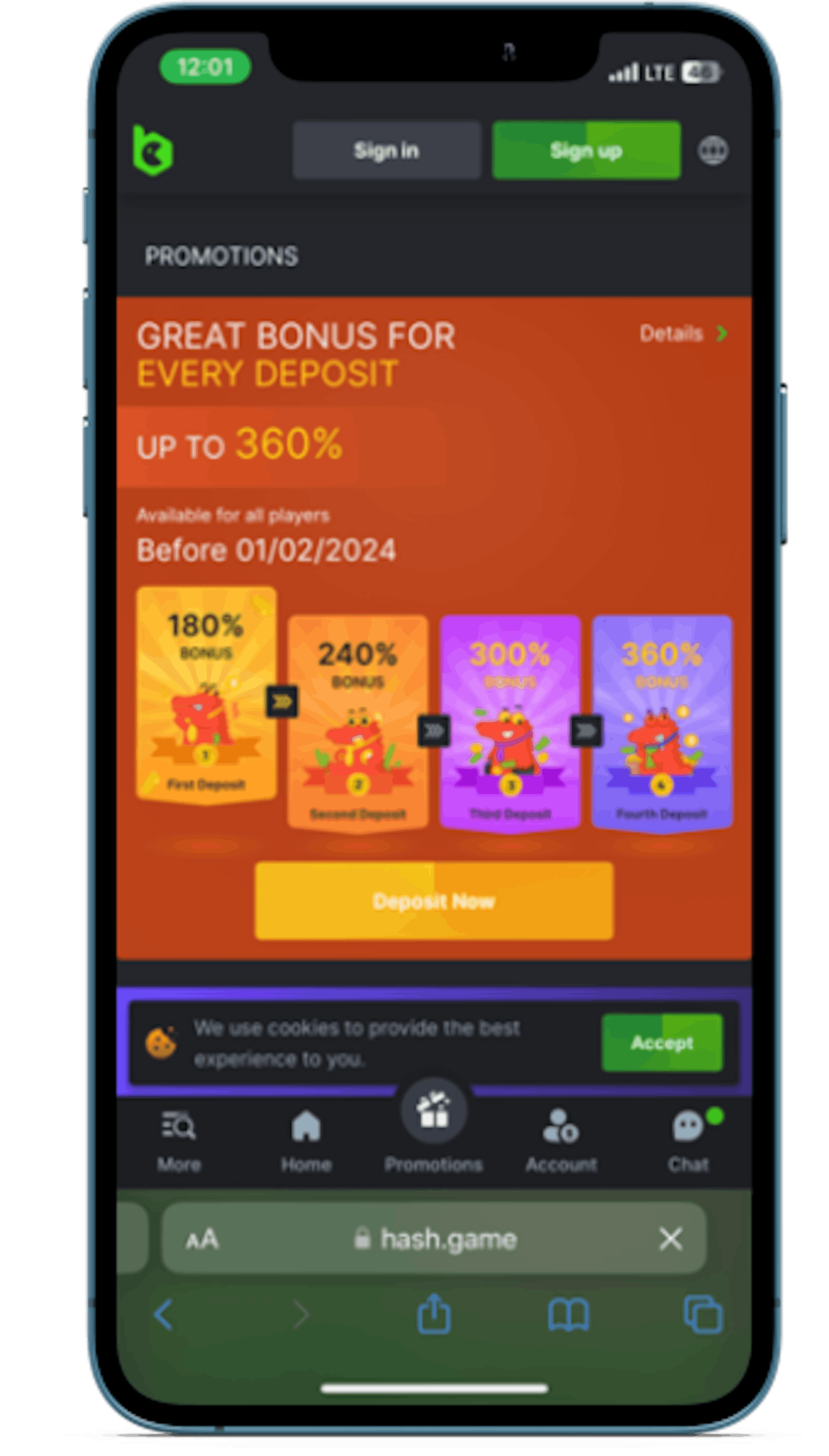 For Nigerian bettors making their first deposit in fiat currency (Naira), here's the breakdown: The initial deposit must be a minimum of N6,073, unlocking a bonus of 180%. As you progress to the second stage, the required deposit increases, accompanied by a corresponding boost in the bonus amount.