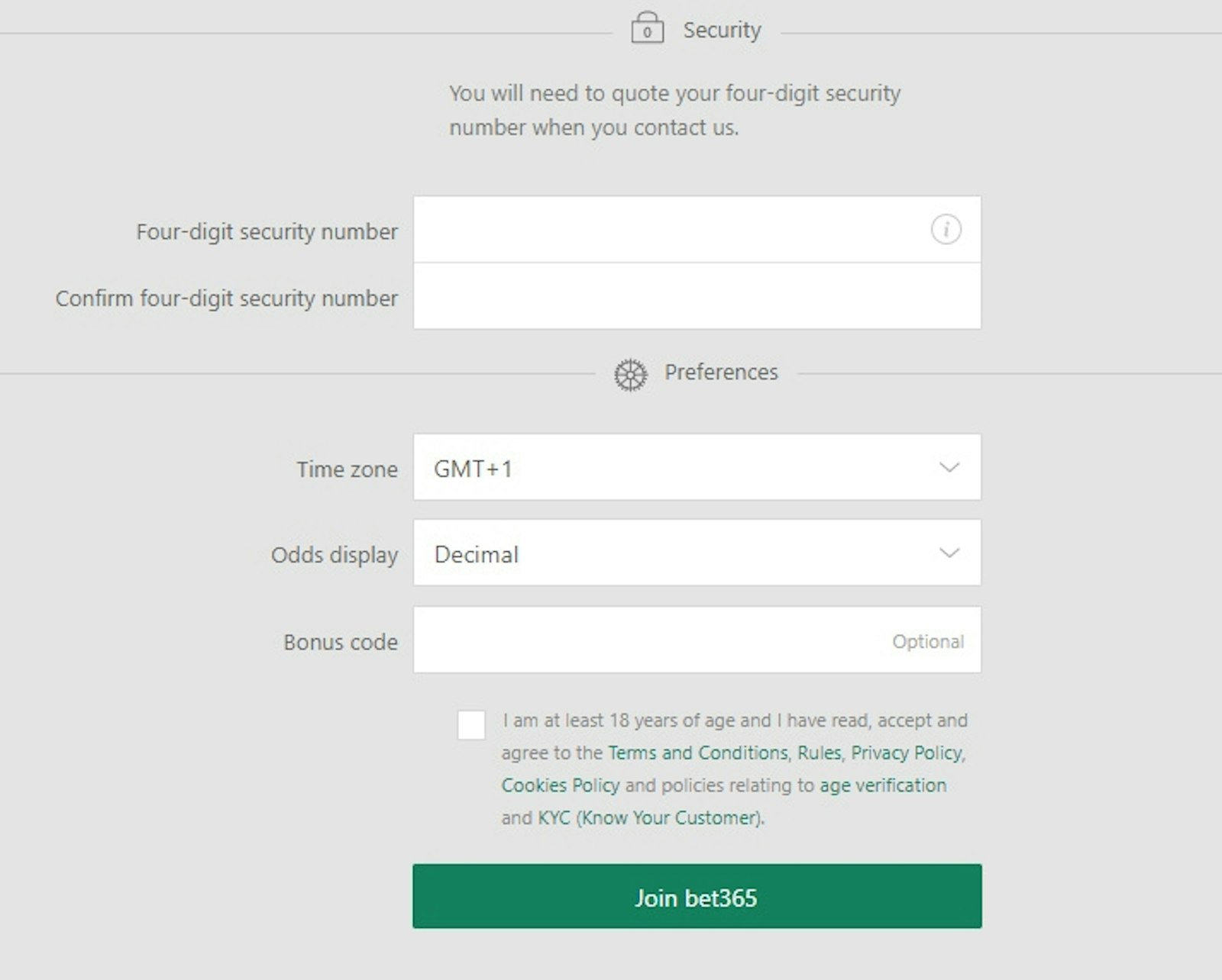 After supplying these details, accept the bet365 terms and conditions and click "Join bet365".