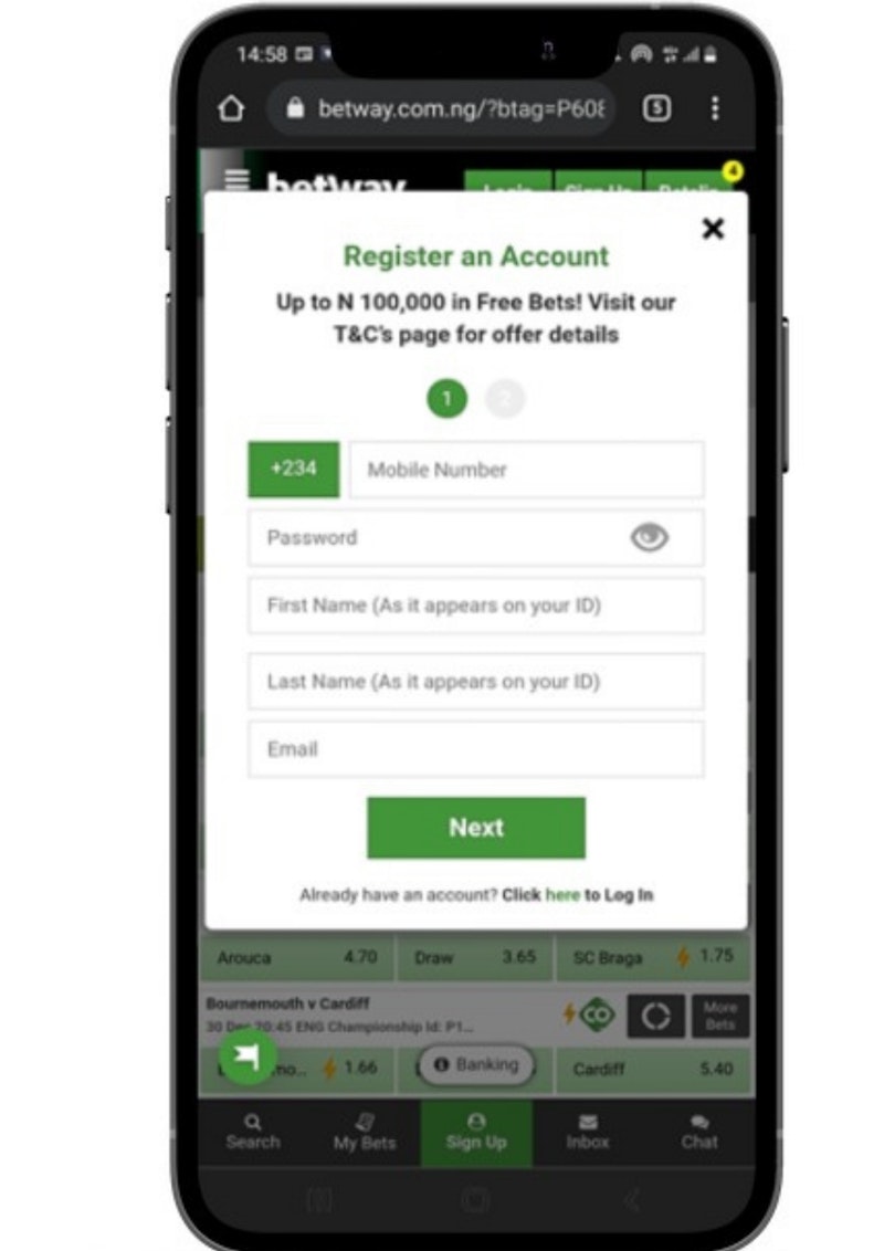 Joining betway is very easy. You can complete your betway registration within two minutes. All you need to do to join betway Nigeria is to provide a few basic details like names, telephone number and email address.