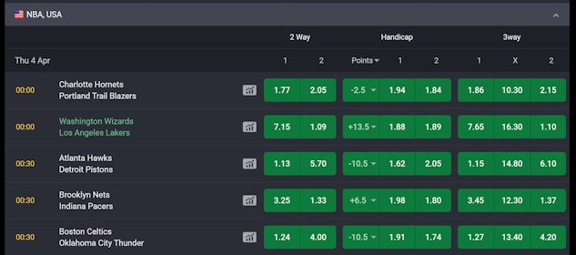 To bet on the NBA, open an account with any of our recommended betting sites, make a deposit, navigate to the NBA games available on the bookmaker and look for available markets.