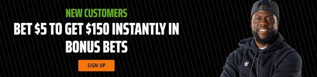 Place a $5 Wager and Get $300 in Bonus Bets If That Bet Wins 21+. New customers only. Offer(s) available in AZ/CO/CT/IA/IL/IN/KS/KY/LA/MD/MA /MI/NC/NJ/NY/OH/PA/TN/VT/VA/WV/WY/DC. Minimum $5 first deposit required. Promotion bonus will be credited to your account within 72 hours of settlement of Qualifying Wager. First online real money wager only (minimum $5). Bonuses issued as non-withdrawable bonus bets that expire in 7 days. See full T&C at FanDuel.  | |||||