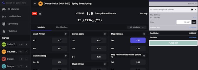 Esports is another area that VBet covers well - markets are available on the main MOBA and FPS titles as well as numerous other games.