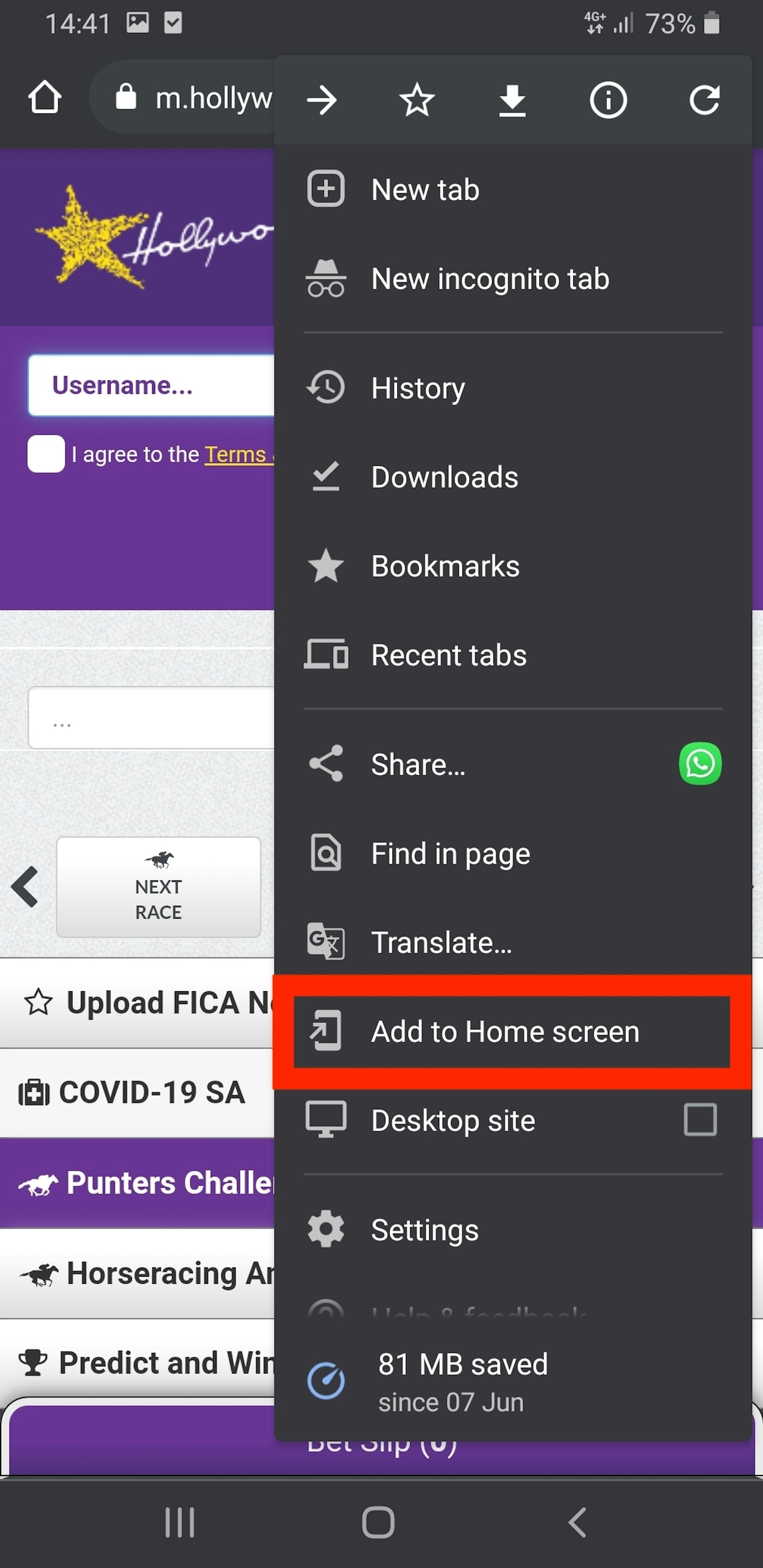 This will ensure that the Hollywoodbets Icon is saved to your phone’s home screen!
