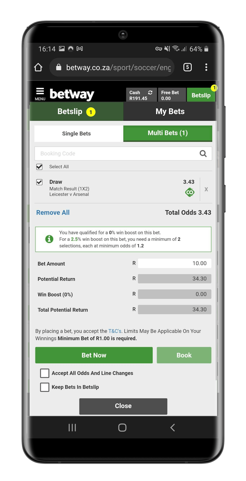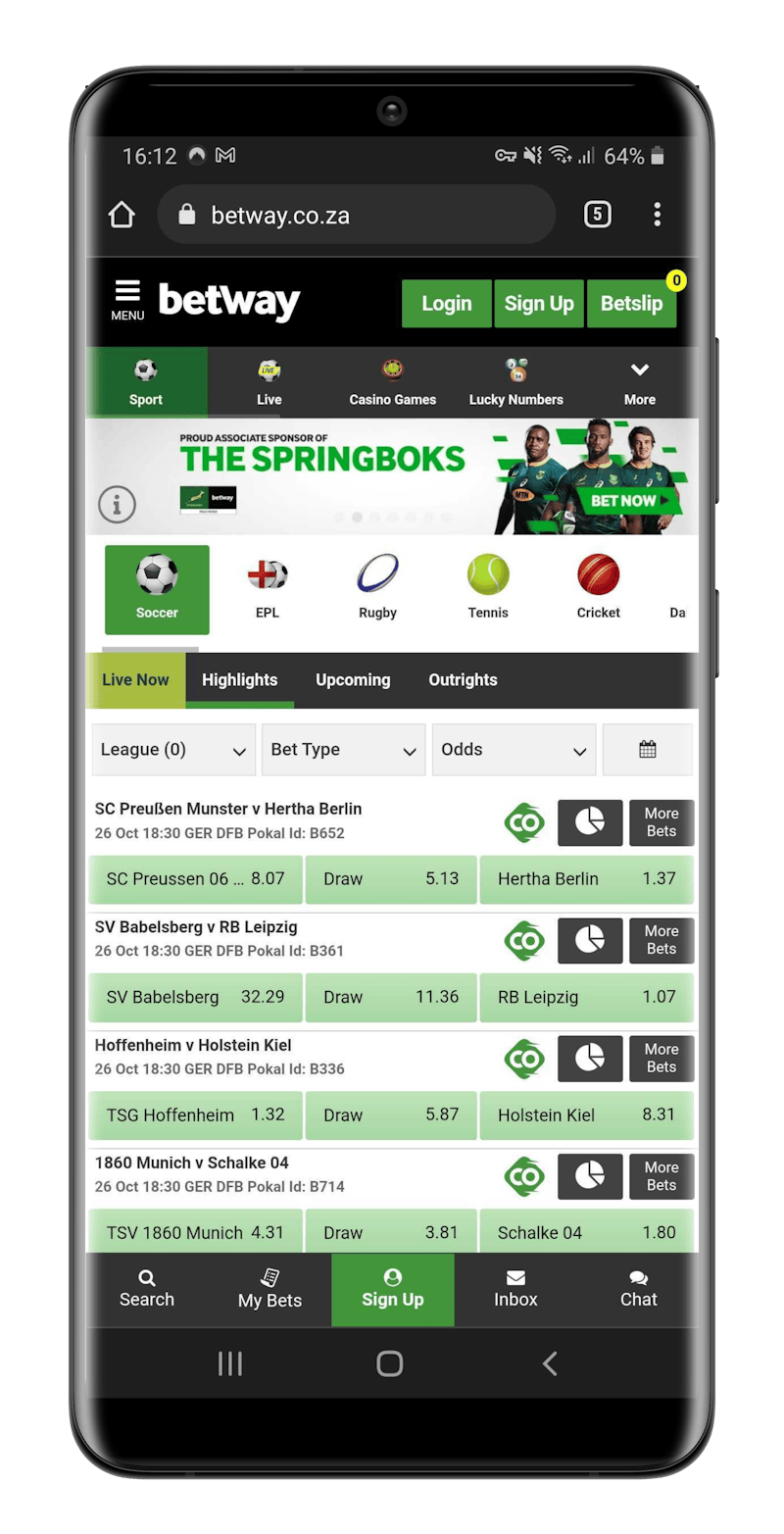 The number of features at Betway sportsbook is probably it's most attractive attribute.