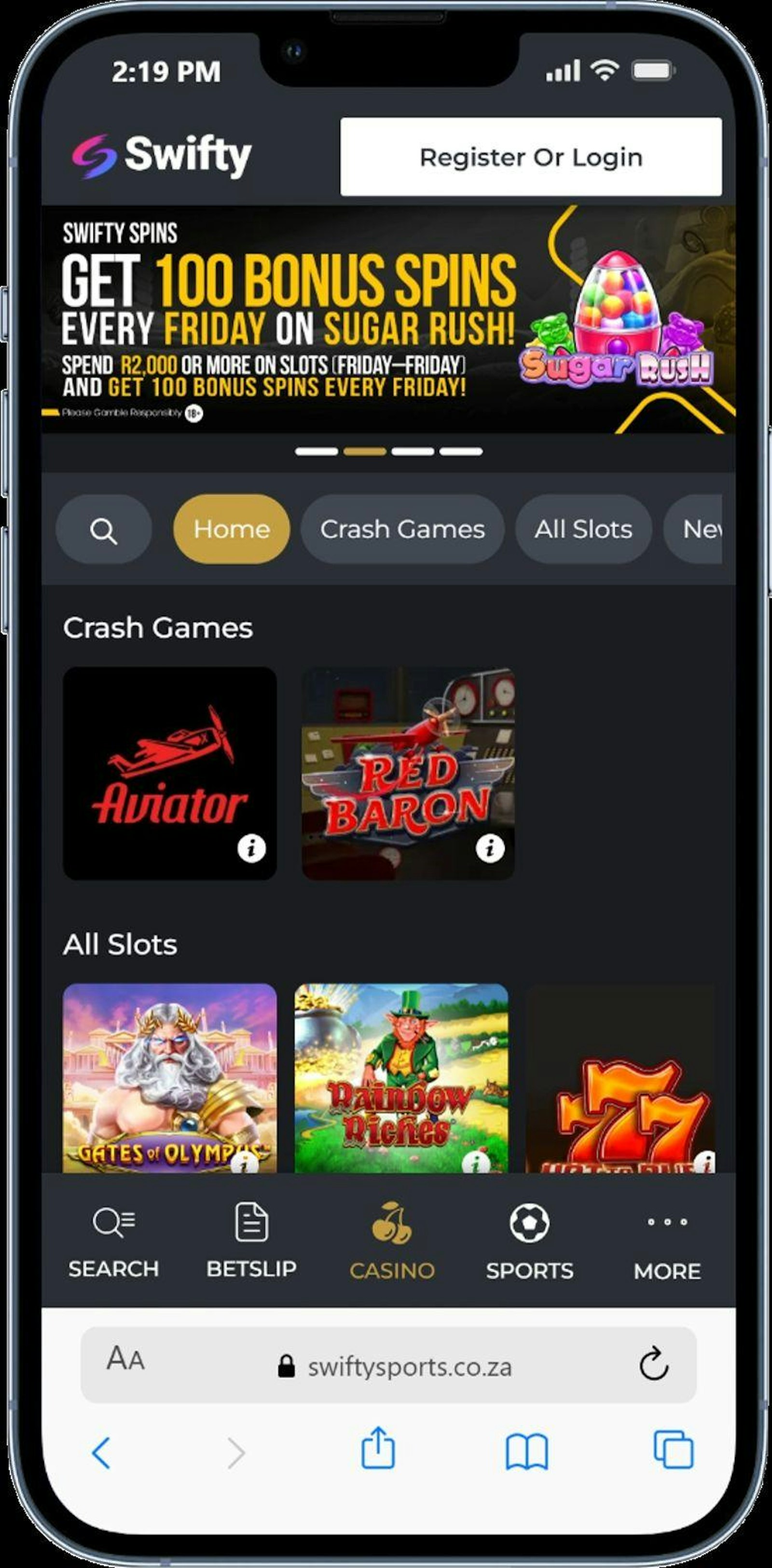 New customers on Swifty Sports can claim sports and casino bonuses. The sports bonus is a R200 offer for customers that download the app, while casino lovers can take advantage of the 50 Free Spins available for new players.